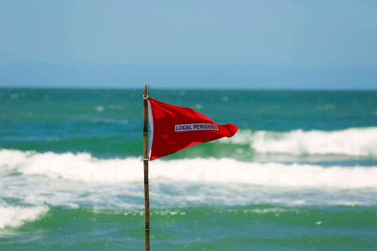 A red flag warns swimmers of dangerous conditions. Image via Shutterstock/Salty View.
