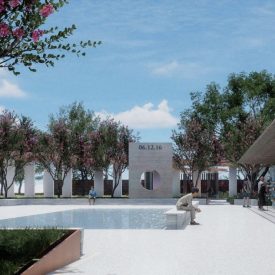 El concepto que tendrá hasta ahora el monumento incluye 49 columnas con los nombres de cada una de las víctimas, un jardín de sanación, un espacio para la reflexión, una fuente para rendir tributo, un espacio privado para reuniones y un pabellón educativo.